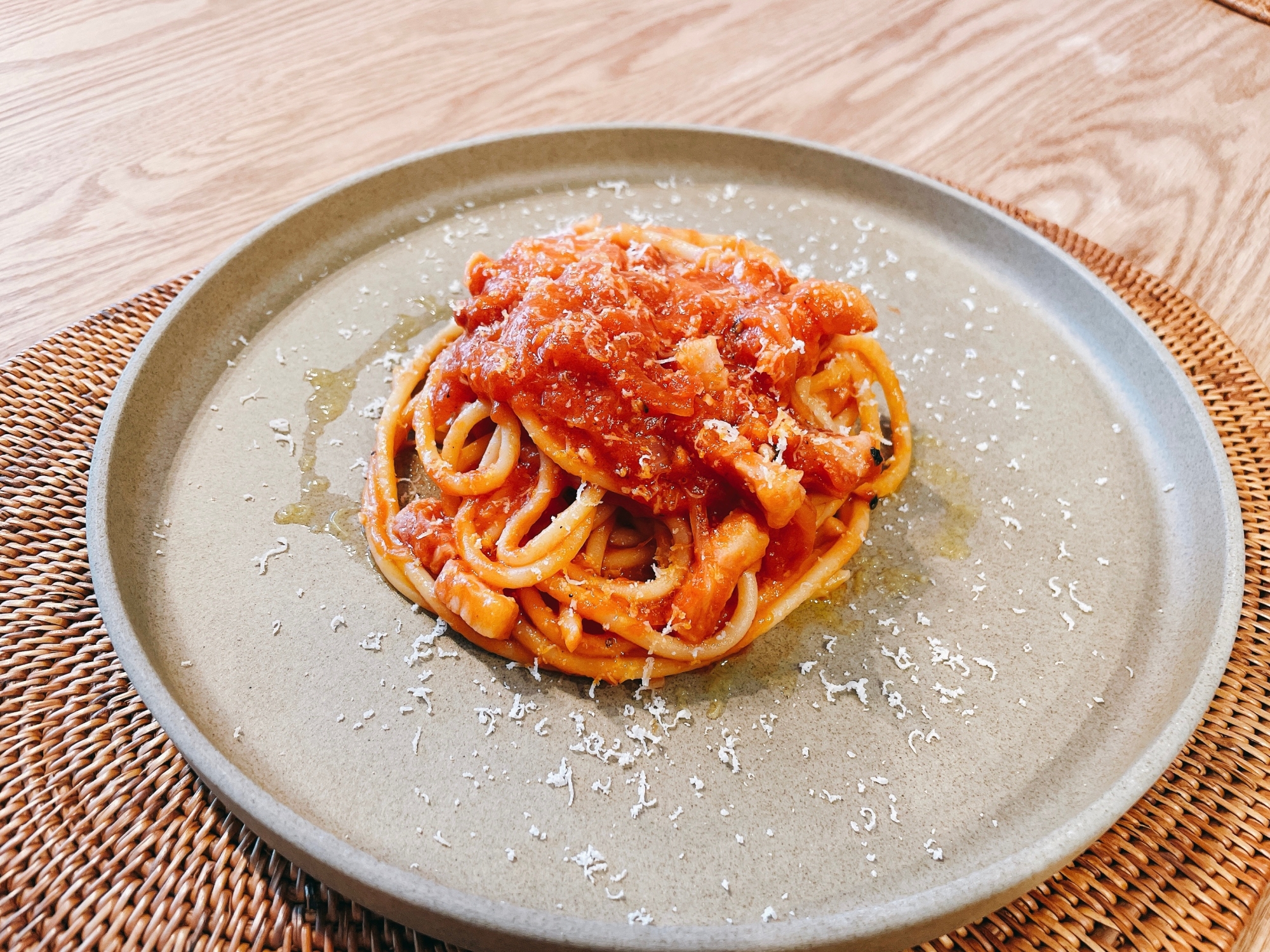 ツナとトマトソースの相性がいい 玉ねぎとツナのトマトソースパスタ オレシピ 俺のレシピはお前のレシピ